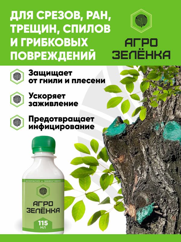 Агрозелёнка создаёт тонкий защитный слой.зелёнка – это зелёный антисептический концентрат нового поколения для защиты растений от инфекции и ускорения заживления после срезов, обрезки, повреждений или стрессов.