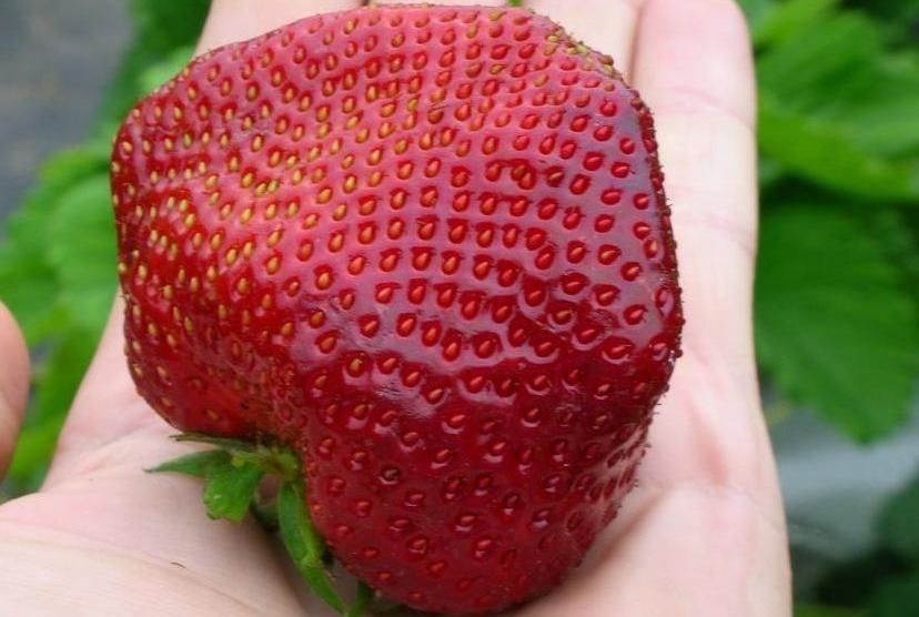 Ягоды гребенчатой формы, очень крупные, мясистые, сочные! Имеют насыщенный запах лесной земляники, и очень приятное послевкусие. Вкус – сладкий, сахарный без кислинки. Созревает в конце июля.