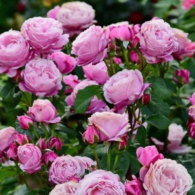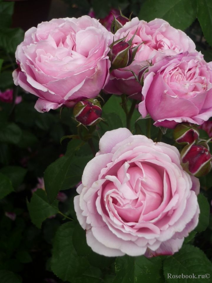 Его бутоны насыщенного сиреневого цвета, расположенные в чашечке, распускаются в роскошные розово-лиловые цветы на кустах с пурпурными стеблями, мощных и очень устойчивых к болезням.