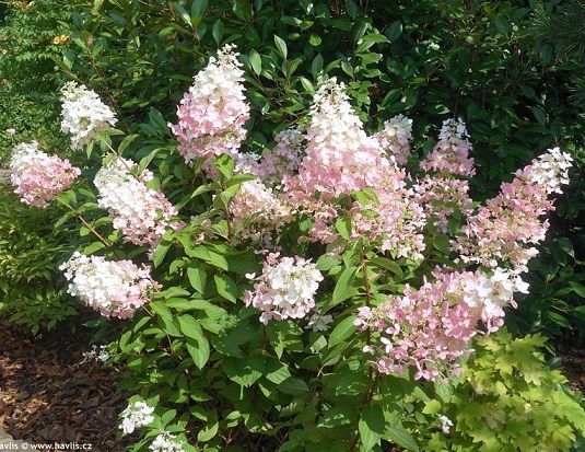 Конфетти (Confetti, Vlasveld 02) – это сорт, относящийся к метельчатой группе. Кусты у него компактные и не слишком высокие, примерно по 100-150 сантиметров. Стандартная ширина крепкого куста – 70-80 см. Побеги отличаются крепостью и прочностью, выглядят довольно мощными. Они окрашены в коричневый оттенок, при этом довольно часто встречаются и оранжевые подтона. Овальная темно-зеленая листва обладает заостренным верхом.