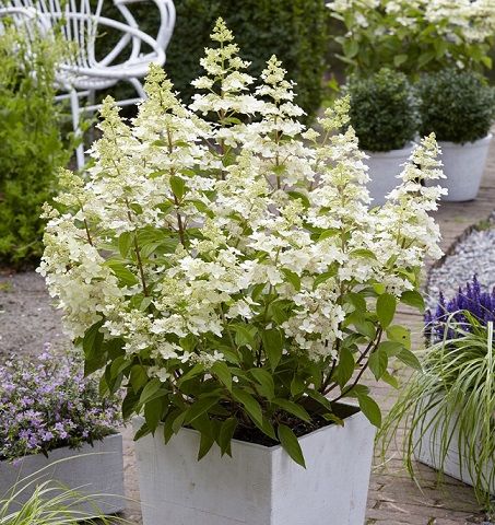 Расположенные вертикально соцветия являют собой простые конические метелки. Особенность каждого – крупные размеры (до 30 сантиметров в длину). Состоят соцветия из стерильных и плодущих цветов (крупные и мелкие соответственно). Диаметр цветка, входящего в группу, – около 2 см.