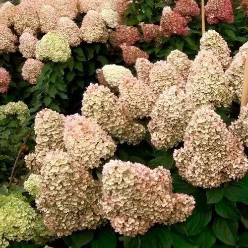 Гортензия Panenka — компактный сорт с крупными, нежно-лимонными ароматными соцветиями, которые к концу сезона приобретают розовые оттенки.