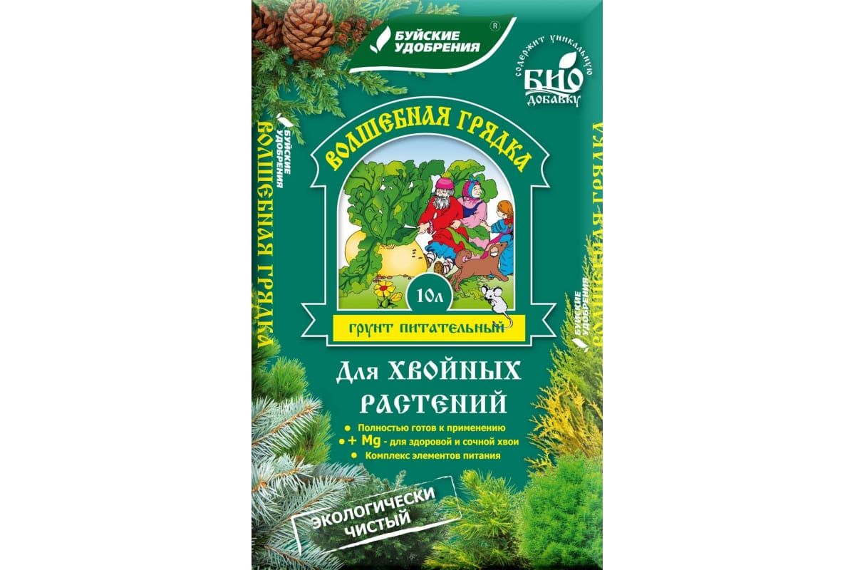 Питательный грунт для хвойных культур Буйские Удобрения Волшебная грядка предназначен для выращивания хвойных декоративных комнатных культур.