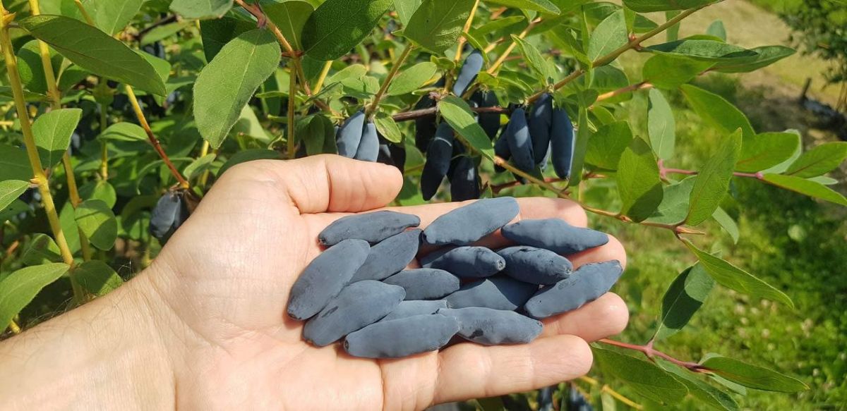 Ягода: 1,8 - 2,7 гр.Крупные широко-веретеновидные ягоды темно-фиолетового окраса, переходящим в черные тона. Тонкая кожица покрыта слабым налетом пруина.