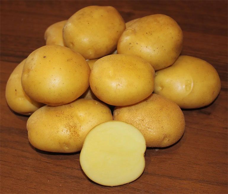 Клубни обычно средние и крупные по размеру, выровненные по форме, легко чистятся, обладают высокой товарностью (88-98%).