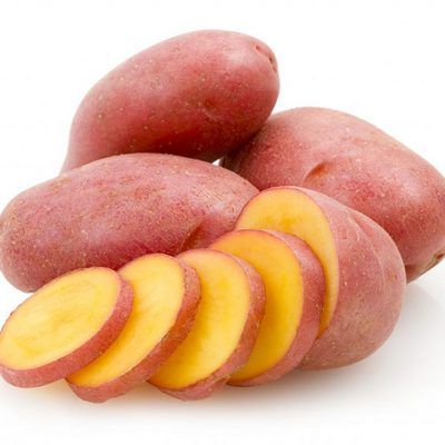 Клубни в гнезде созревают быстро и наливаются дружно. По форме они овально-округлые, покрыты красной, довольно грубой кожурой.