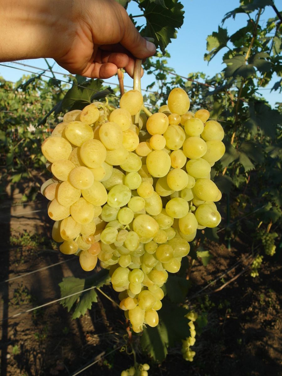Ягоды винограда Супер Экстра удлиненные, крупные светло-золотистого цвета.