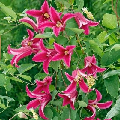 Гордостью клематиса «Принцесса Диана» считаются его цветы. Их окраска обычно насыщенно-розовая или почти красная. Цвет тычинок — любой из оттенков желтого.