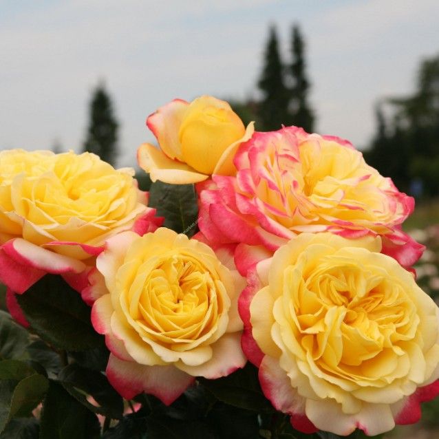Цвет: двухцветные / биколор, желтый, розовые крайние лепестки.
