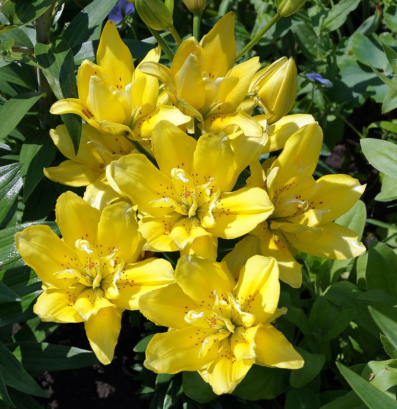 Цветок желтый в темно-красных точках, крап на треть каждого лепестка; рыльце умеренно красновато-коричневое.