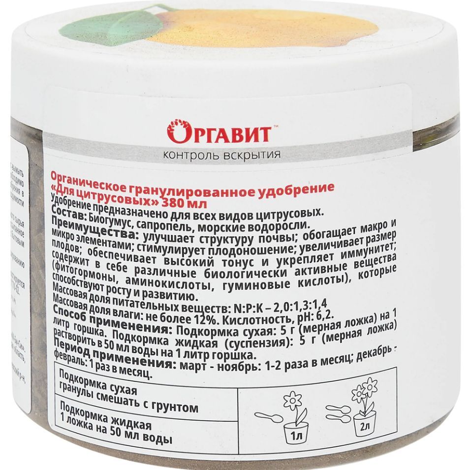 Удобрения "Оргавит" проходят термическую обработку и микробиологическую ферментацию, тем самым убивается вся вредная патогенная микрофлора и достигается отсутствие резкого запаха, так же путем данной обработки удаляются яйца, личинки гельминтов, мух и семена сорных растений. Гранулы полностью сухие, стойкие и не рассыпаются.