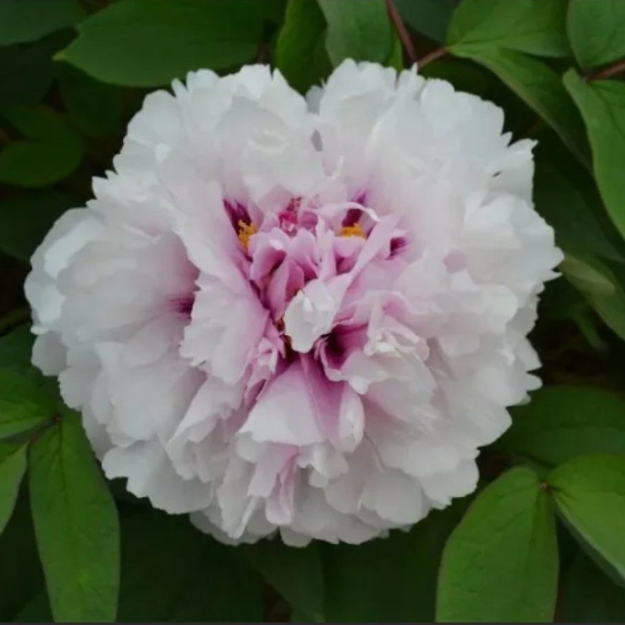 Пион древовидный «Персиковый цвет» (также «Персик под Снегом») — это морозостойкий, долговечный кустарник, который ценится за крупные (до 20 см) махровые цветки нежного серебристо-розового оттенка, с контрастной белой каймой и фиолетовым центром, образующий пышные кусты до 1,5-2 метров в высоту и привлекательный даже после цветения своей ажурной листвой.