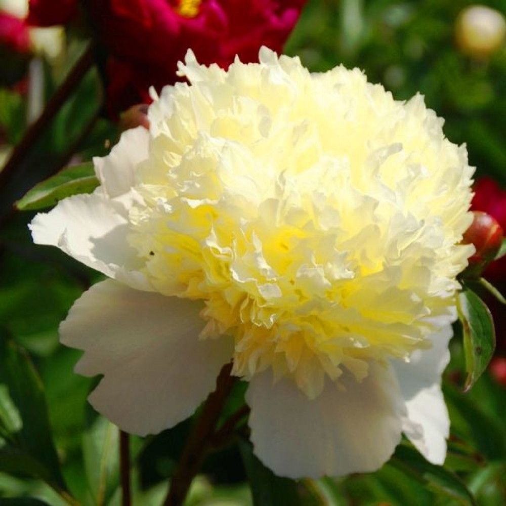Пион 'Laura Dessert' – это известный сорт молочноцветкового пиона с махровыми, корончатыми цветками, который часто называют "десертом" из-за его нежного кремово-желтого цвета.