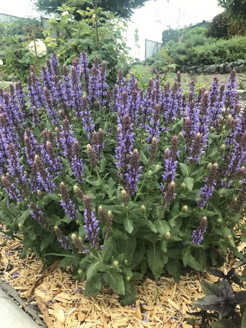 Цветки мелкие, темно-фиолетово-синие, собраны в колоски.
