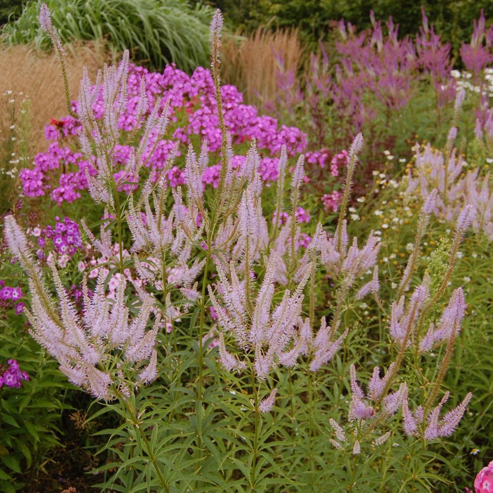Стройные и утонченные кустики вероникаструма придают садовому участку легкость и выразительность.